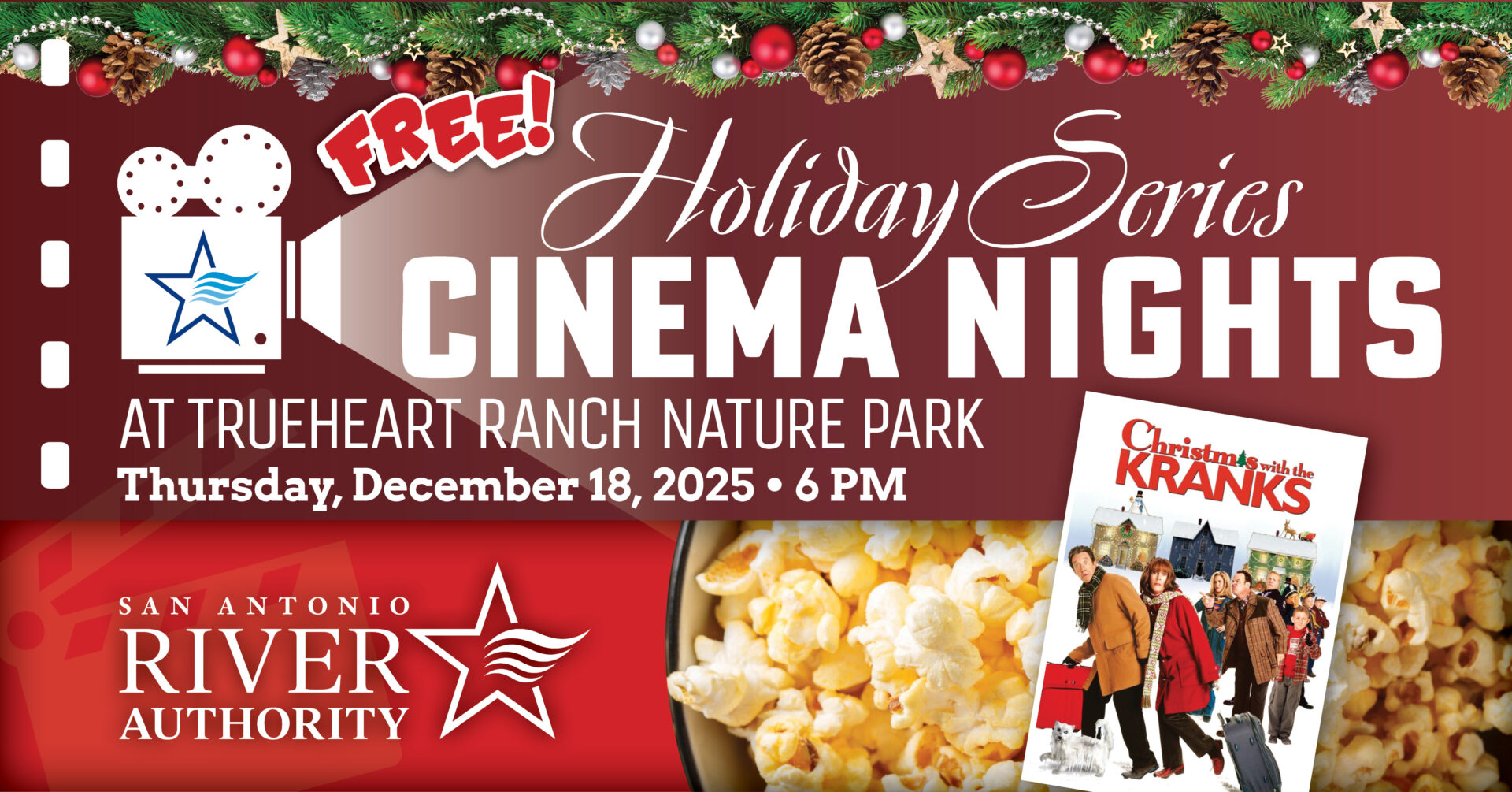 Trueheart Ranch Nature Park 14984 Blue Wing Rd, San Antonio, United StatesJoin the San Antonio River Authority for our 6 Days of Christmas Cinema Night Holiday Series! Snuggle up with a blanket, sip on some hot cocoa, and enjoy a magical